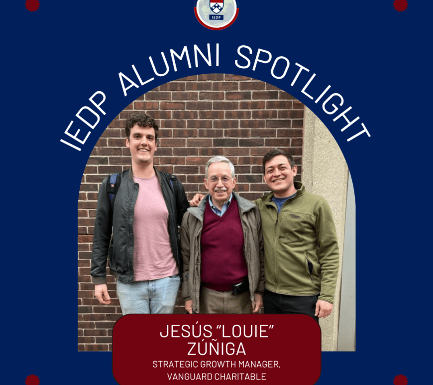 For this month’s IEDP Alumni Spotlight, I am excited to introduce you to IEDP alum, JesĂşs “Louie” Zúñiga. I first learned about Louie from an IEDP friend, who shared that they had a great experience connecting with Louie. And then when our Program Manager, Lauren shared that he had single-handedly organized the university-wide Problem-Solver Symposium during his time in the program, I knew Louie would … Continue reading IEDP Alumni Spotlight: JesĂşs “Louie” Zúñiga, Strategic Growth Manager at Vanguard Charitable