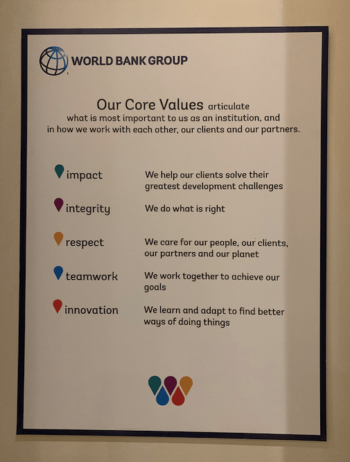 Just a couple of hours into the bank, I was already intensely aware of what its mission and ideals stood for. From the beautiful building architecture, the pictures and letters engraved on the tall walls to every nook and corner, even the most seemingly minute details reflected the core values of the institution- impact, integrity, respect, teamwork and innovation.